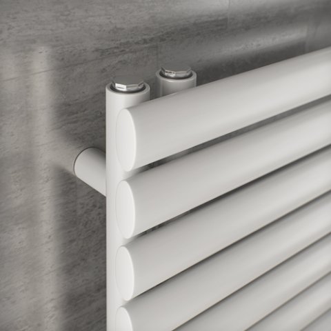 Wykończenie:grzejnik wykonany ze stali niskowęglowej lakierowanej proszkowo, zbudowany z eliptycznych poziomych rur 25x50mm i pionowych okrągłych kolektorów 30mm