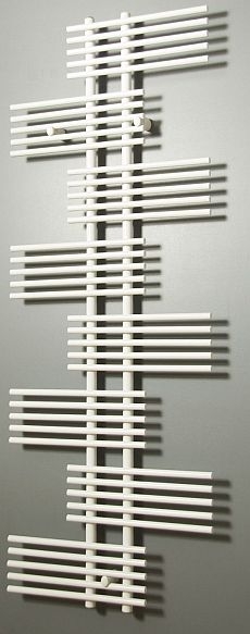 Dekoracyjny łazienkowy grzejnik NEPTUN z naprzemiennymi sekwencjami poziomych rurek, zachwyci wszystkich, którzy przy zamiłowaniu do prostoty poszukują czegoś niezwykłego.
