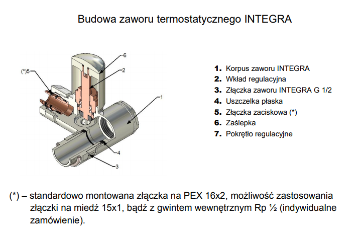 Zestaw dekoracyjnych zaworów regulacyjnych 3-osiowy INTEGRA przeznaczony jest do montażu na grzejniku centralnego ogrzewania w systemie dwururowym. Korpus zaworu zintegrowany jest z trójnikiem umożliwiając podłączenie grzałki elektrycznej bezpośrednio przez zawór do grzejnika. Zawór regulacyjny montowany jest na grzejnik po stronie przewodu zasilającego. W zestawie komplet złączek na PEX,lub na MIEDŻ.
